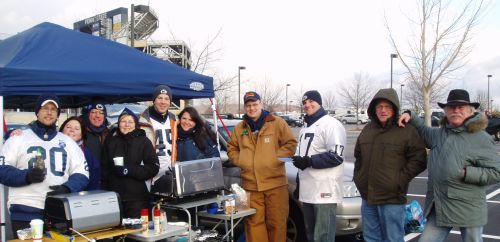The players were very talented and even playing Rob's request "country roads" first. They also played our other requests as well. These included, Piano Man, Taking Care of Business, Don't Stop Believing and a few others. It was a great start to an awesome tailgate weekend. SaturdayRob got up at 7 AM to meet Rick and get all of the pig gear. We proceeded to set up the pig right next to the road. Eventually, the rest of the crew awoke and helped with the morning set up. There were priceless looks and comments that we got from all the people walking and driving by our tailgate. An abundance of people stopped to take pictures of the pig during the prep as well as when it was on the spit. Once the pig was finally on the spit, we did a group toast of Jager bombs that Jason brought. I wish we could have had a video camera to capture the experience. After a little while, Caitlyn and Danny brought their 2 week old daughter, Addison, for a visit during the morning. This is the youngest baby we've had at a tailgate. She was all bundled up, but did have on her PSU flair for her very first Diesel Tailgate Experience. After all the set up was complete and people were relaxing, we set up chairs next to the pig so we could watch the people photograph, comment about and gawk at our the pig roast. I Wish I would have written down some of the comments I've heard. One in particular that sticks out is when a group of girls walked by, one yelled "Vegan" and her friend make the puking noise. Another comment which sticks out is actually our Quote of this letter. A school bus full of students drove by yelling out, "We want the Pig!" It was a noon game, so people headed into the stadium. The group of us sat in the sun on the north side of the stadium. It was almost too hot for long sleeves. The one good thing was that you could buy beer in the stadium, so that helped us stay cool. FedEx field wasn't 100% full, but