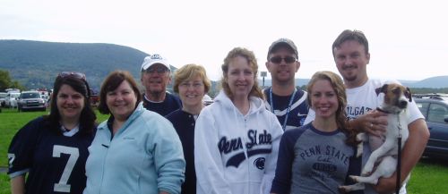"We are dominating nature"Rob has been up at PSU since Labor Day and there was much initial uncertainty about being able to park in lot 19 for the game due to the amount of heavy rain that has pounded the state within the weeks prior to the game. Many e-mails and articles were sent around about the possibility that parking would be changed, but no final word until after we were already settled in. Wednesday Night:Chad and Andrew arrived and joined Rob at the Fort Bellfonte Campground.Thursday:Rob, Chad and Andrew went to the Nittany antique tractor and machinery show while waiting for the rest of the crew to show up at Sam's Club. Around 4 pm we stopped by the RV lot just to confirm that they would let us park there and they indeed would. RV's slowly started to arrive at Sam's club. Rich and Nell needed to detour due to flooding in Rt. 322. Chris and Kara were detoured because of flooding on Interstate 80,
