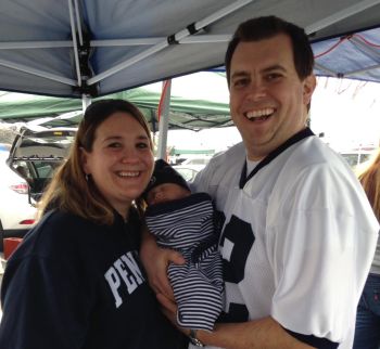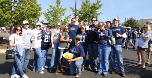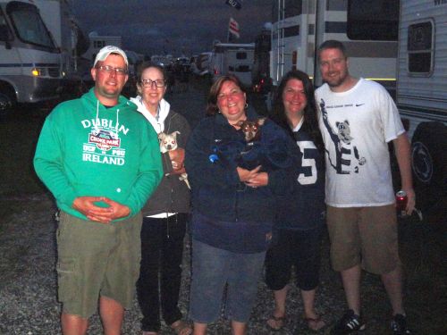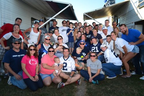 This was also the first weekend that the newly engaged couples were able to meet since getting engaged. Shawn and Shari made custom “We are engaged” PSU cozies for themselves and Alaina and I. Once of the funnier moments was when Shawn and I were sitting in down and one of the neighbors asked what was on the cozies. Without thinking, we both held them up and said, “We are engaged.” A split second later, we both blurted out “not to each other.” As the night approached, we played a few games of “Pigs.” Our group was the last people to leave the lot at 9 PM. It was a beautiful day. For the Glory, Go to 2013 newsletters |