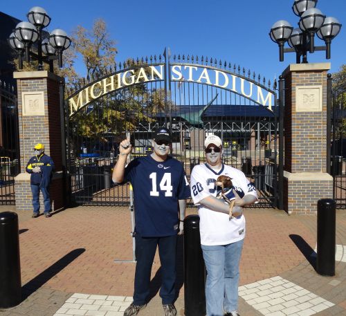 For half time, the blue band’s show consisted of TV show themes, complete with matching formations. When game goers returned by to the RV, everything was already packed up. I turned on the oven and heated up the turkey legs for a late-night snack before heading to bed. SundayThe morning was still nice. We finished cleaning up outside before Mad and Suz stopped by to pick up their stuff and discuss next week’s plans. Alaina and I headed to Ollie’s before departing State College.For the Glory, Dirty Alumni Tailgating Newsletter Volume XI Issue 7 at Michigan10-11-2014![]() Official quote: