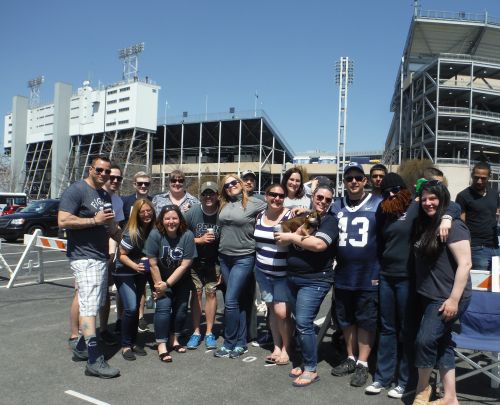 The backs of our RVs were posted on the GoPSUsports twitter. No fan base beats the blue & white faithful! Over 200 RVs out so far ahead of #PSUbluewhite. #PSUnrivaled pic.twitter.com/Pn64jNLprr It was a gorgeous day. Rich, who had driven his truck in with the convey, headed back to RV lot to get his family and crossed paths with me as I was walking over to the tailgate.