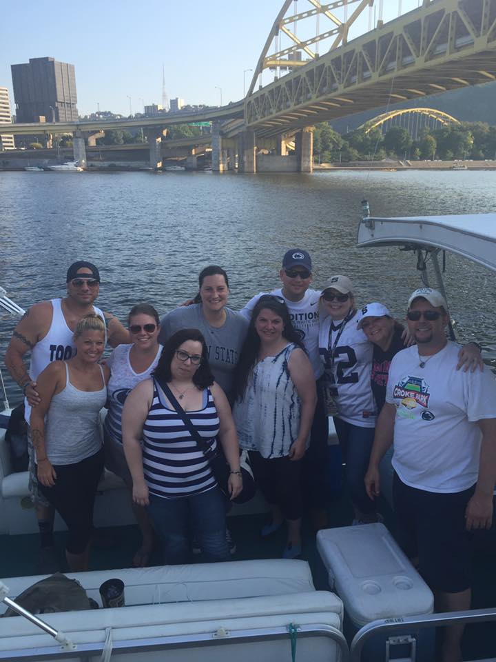 “We need to get a river in State College”During 2015, we even took a trial run to see how a trip to Pittsburgh would work. It took us ~ 4 hours to get to Pittsburgh and 4 hours to get back home. During the winter, I spent a lot of time on the phone with other marinas and working through several different plans that would allow me to keep the boat in Pittsburgh and not require me to stay awake for more than 24 hours. It all paid off. One of the best reviews of the weekend was from Jessi, “It was so easy to tailgate. We just got on the boat and went.”