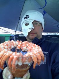 "Is that Iced Tea?"On my way into State College for the weekend, I stopped at Blue Knob auto and bought a new car (and picked it up Sunday)! This was our second new car for a tailgate this season. I took Maddy and Suz to Otto’s for a later dinner and drinks. We stayed out late. SaturdayMaddy and Suz were kind enough to pick me up at 7:45. We arrived at our lot at 8:00. Our group and Smitty were the only ones tailgating around Beaver Stadium for a full hour. We enjoyed some breakfast bacon, eggs, and potato pancakes. The Greene’s and Olah’s arrived. The morning weather was intermittent rain. It would stop raining for a few minutes and then pick back up again.