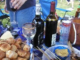 The Bloody Mary. There are a million recipes for this drink. No two mixers seem to mix the same concoction. The reality is that the Bloody Mary is an art form, not a science. To truly master the art of the Bloody one must study with a master and then, after trial and error develop ones own style and technique. Jon is the heir to the title Bloody Maker. He had been trained by Mr. Hoover for several seasons and he practiced on his own off season. The result of his efforts is that he now makes Bloodies that are appreciated by the most discerning of Bloody drinkers. Jon has a certain method and system to his concoction. And he says that he can only make good ones in multiples. He uses the basic ingredients: Tomato juice; vodka; horseradish; Worcestershire sauce and celery to garnish. Jon says that the key is in the Worcestershire sauce. The pour spout must be removed to accurately execute the dash of Worcestershire. Lemon and Tabasco sauce are available for individual doctoring, but no one ever does. I will note that Tyler has also contributed a fair amount of Mary Mixing which is enjoyed and appreciated by all. I recommend that you get some friends together and practice developing your own Bloody Masterpiece.