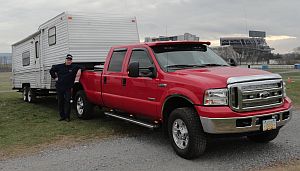 From our humble begins with only 2 Diesel pickups, we have graduated to RVs. Our convoy consists of as many as 8 RVs, although we've only had as many as 6 at a single game.